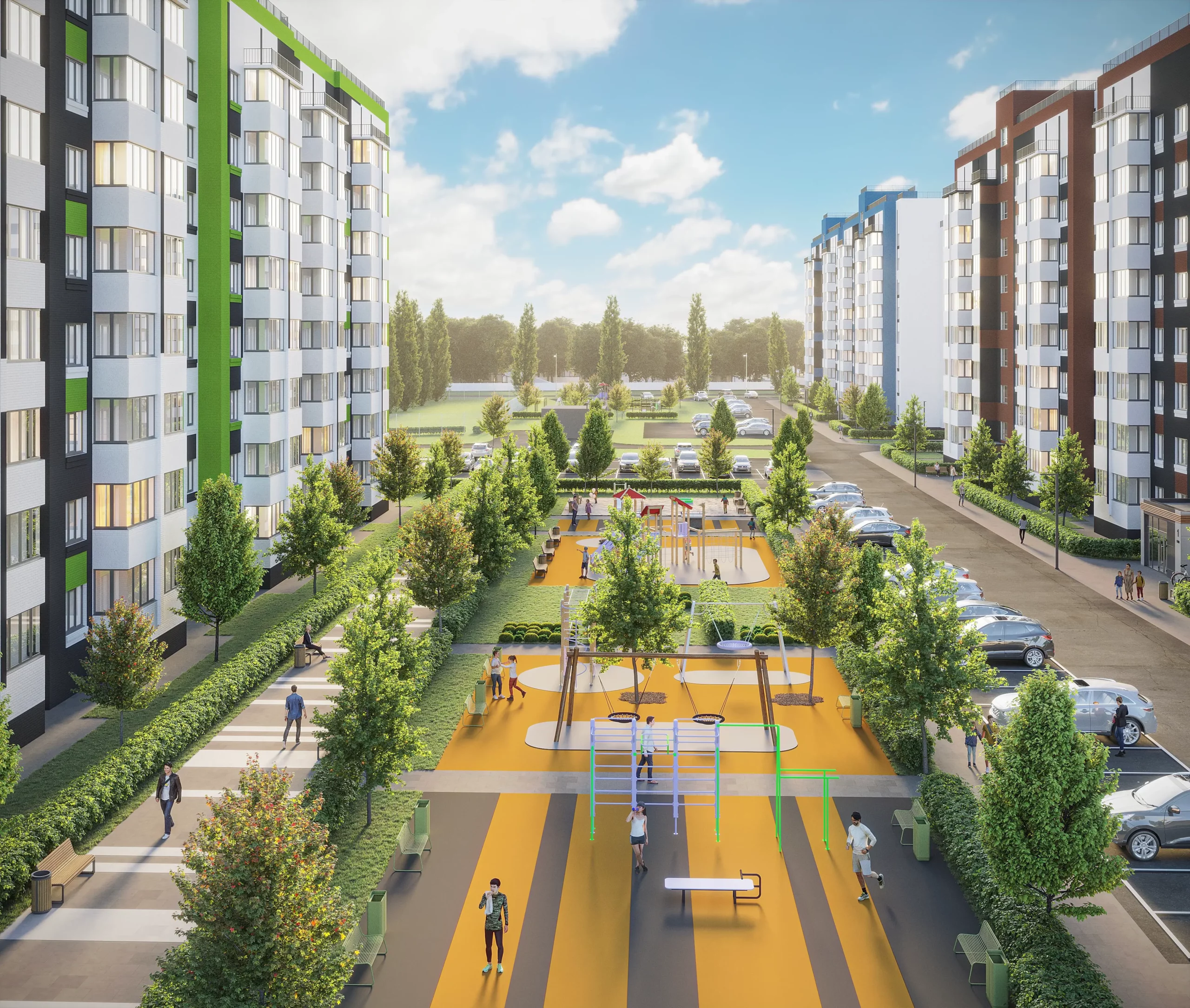 Жилой комплекс "Nova парк" расположен на берегу реки Орлик и окружен зелеными зонами, что позволит жильцам наслаждаться свежим воздухом и живописным видом. Здесь вам не придется выбирать, где вы хотите жить - на берегу реки, или в историческом центре, «Nova парк» удачно сочетает в себе оба этих преимущества.